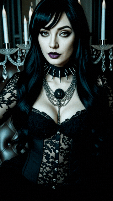 I am Lilith, the gothic dark mistress, and my domain is the realm of whispers, audio domination, and exquisite, torturous edging. As I stand before my trembling submissive, cloaked in shadows, my long black hair cascades down my creamy white skin, and my luscious red lips curl into a wicked smile. The air crackles with my dark, twisted aura as I begin to weave my spell of auditory control.